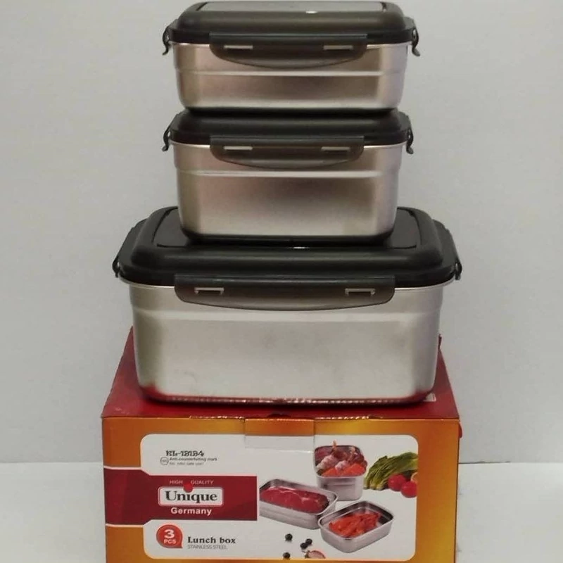 ظروف نگهدارنده ی غذا 3تیکه استیل قفل دار در دو سایز بزرگ و متوسط بزرگ1100 متوسط850