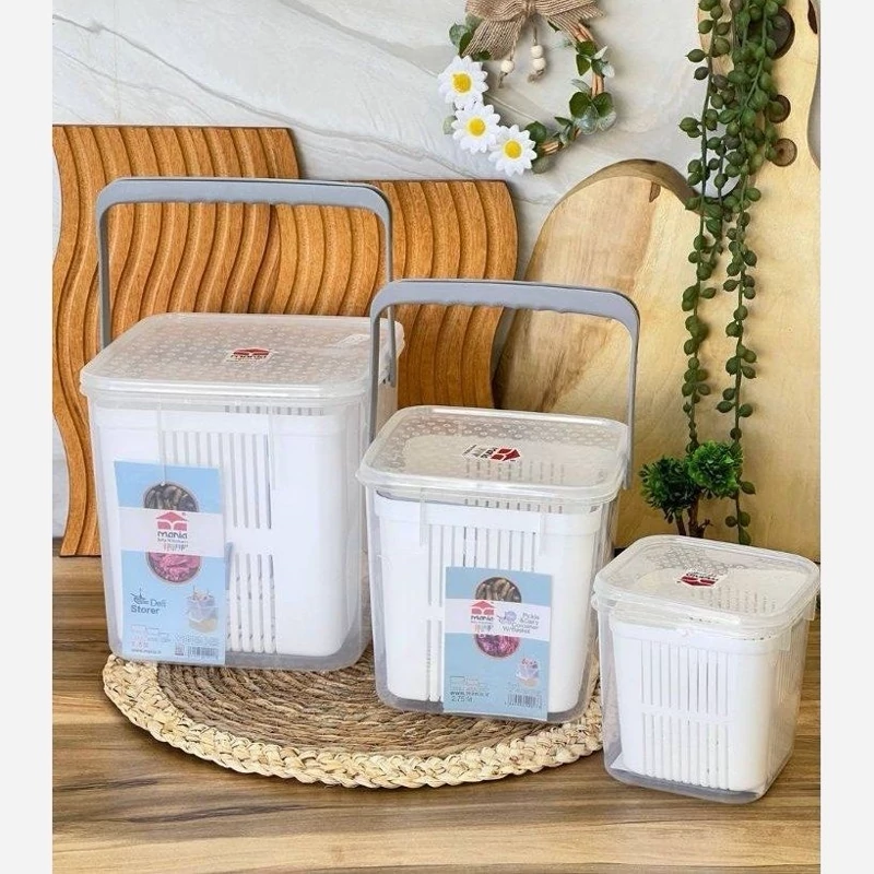 ظرف ترشیجات و پنیر داری مخزن نگهدارنده دارای سبد آبگیر درب تلقی شفاف در 3سایز الیتری190 2/75لیتری 300 5/5لیتری 340